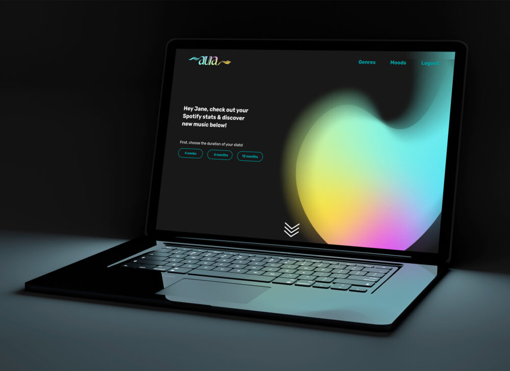 Aura is a website designed to analyze Spotify users' listening habits, offering insights into their top songs, artists, and moods while also providing personalized recommendations. The design seamlessly aligns with Spotify’s aesthetic while maintaining its own unique identity.
