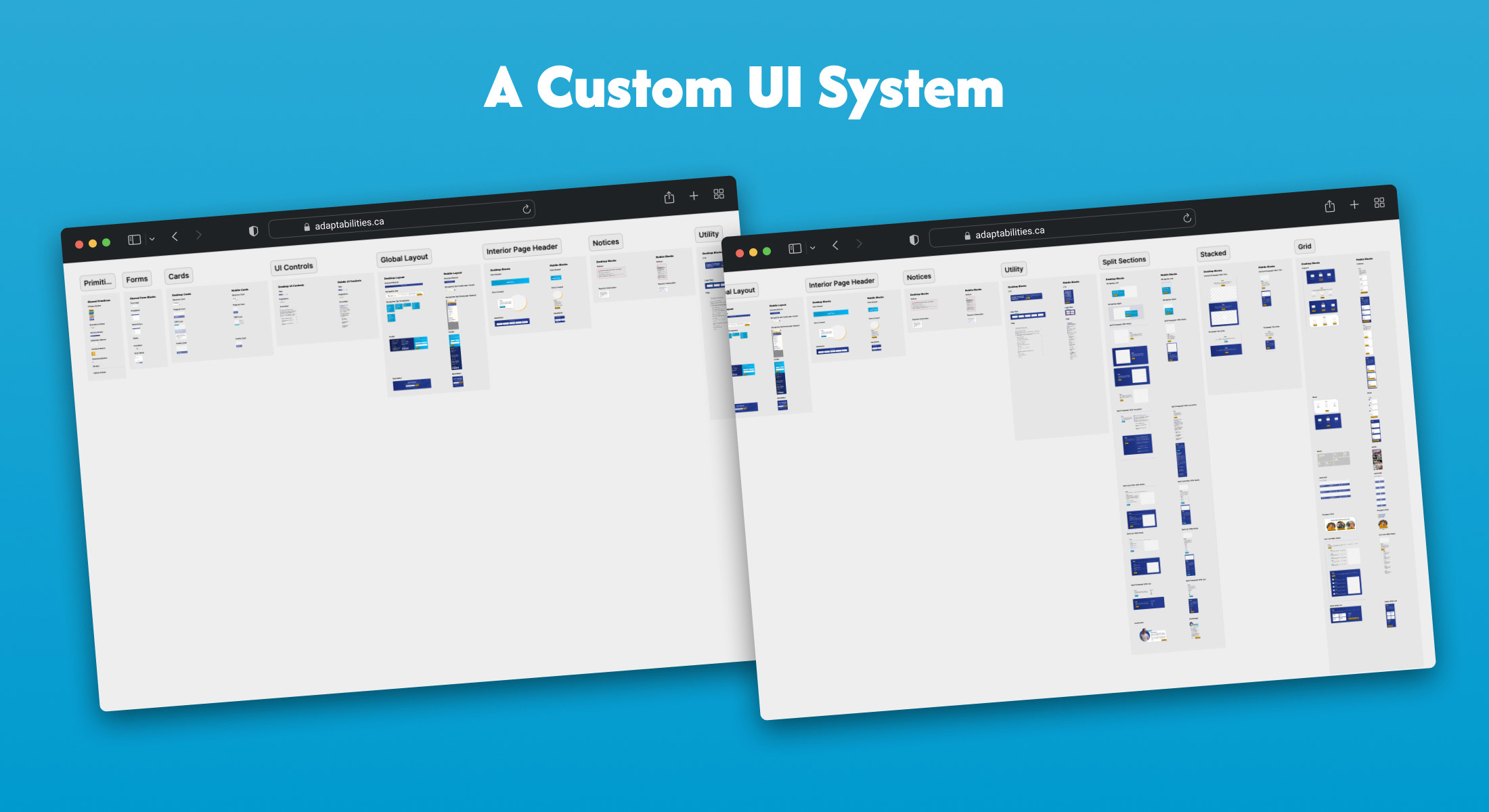 Every button, card, form, and section pattern is built as a reusable component that translates to development, allowing for modular design & upkeep available to AdaptAbilities staff.